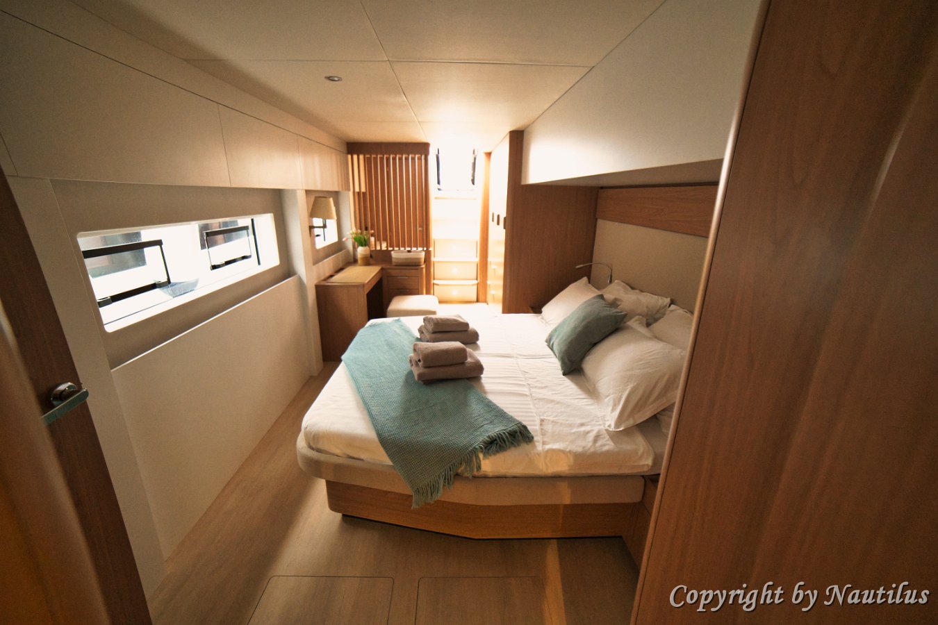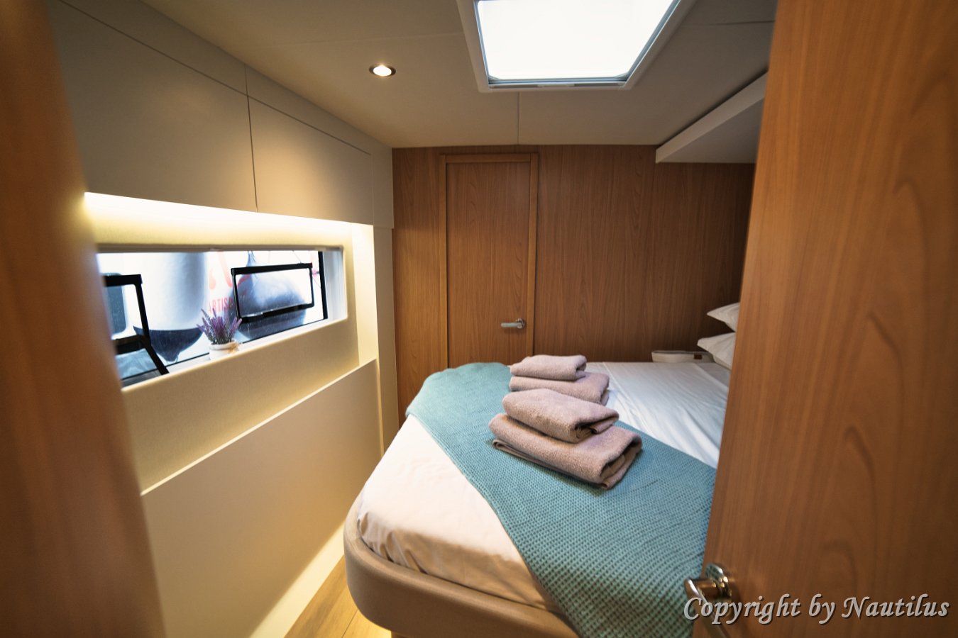 Bali-58-Fly-Kabinen Steuerbord Heckkabine Geräumige Kabinen Privatsphäre an Bord Zugang vom Cockpit Schlafen wie zuhause En-Suite Badezimmer Backbord Kabinenzugang Modernes Bad-Design Backbord Doppelkabine Kabinen-Layout Flexibles Betten-Setup Backbord Kabine Detail Komfort an Bord Etagenbett-Kabine Zweibettkabine mit Stockbetten Etagenbetten Detail Twin-Kabine Option Steuerbord Bugkabine Bugkabine Setup Steuerbord Bug Dachluke