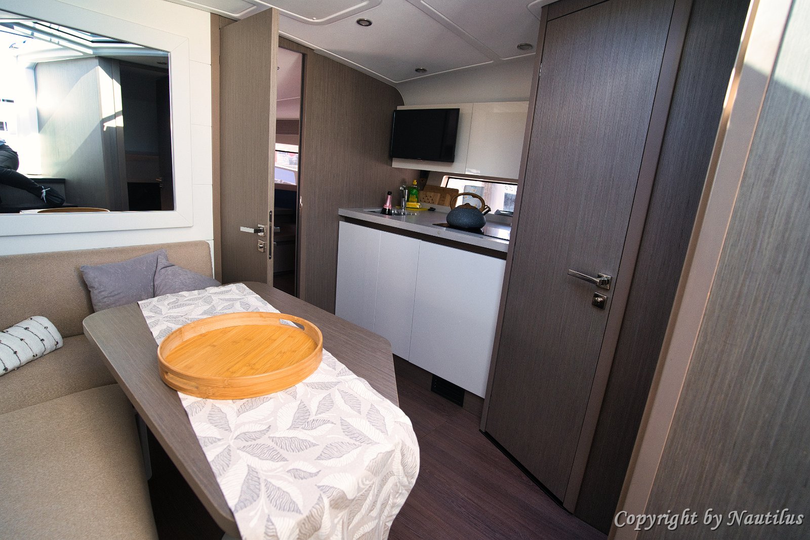 Eignerkabine 'Miami Vice' - GT 41 Gästekabine - Zwei Betten Flexible Unterkunft - GT 41 Pantry auf der Beneteau GT 41 Überblick Unterdeck - Gran Turismo 41 Unterer Salon & Essbereich Systemsteuerung - Gran Turismo 41 Innenlounge - Beneteau GT 41 Layout der Achterkabine Designer-Waschbecken - GT 41 Bettkomfort - 'Miami Vice' Salon & Eignereingang - Gran Turismo 41 Bad & Dusche - Beneteau Küchengeräte - GT 41 Helle Innenatmosphäre Stauraum & Kühlschrank - 'Miami Vice' Details & Verarbeitung Entspannen unter Deck Innenraumvolumen - GT 41 Ambiente der Eignerkabine