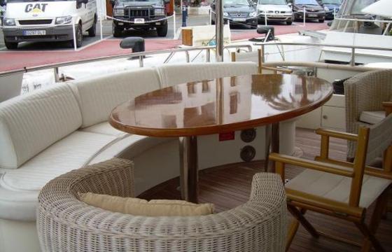 The most stunning of Lagoon Power 44 upgrades is the enlarged fly bridge deck. Three people can sit at the steering station in individual chairs; up to six people can sit comfortably around the table; people can relax on 2 sundecks, one of them in the shape of a lounge chair to the left of the helm station and the other to the rear of the table seating area; For safety at sea, the Fly bridge access can be closed.